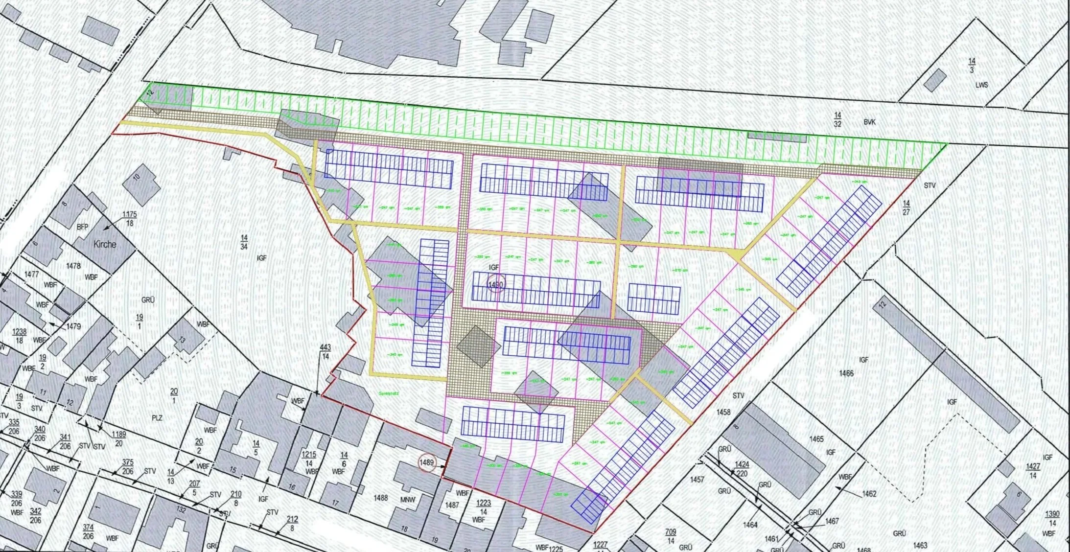 Entwurf für eine Wohnbebauung samt Erschließungsstrassen.